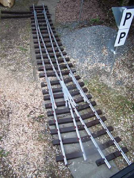 Erste eigene Weiche, gebaut nur aus den Teilen des Normalgleises und eines Weichenherzes und zweier Weichenzungen
