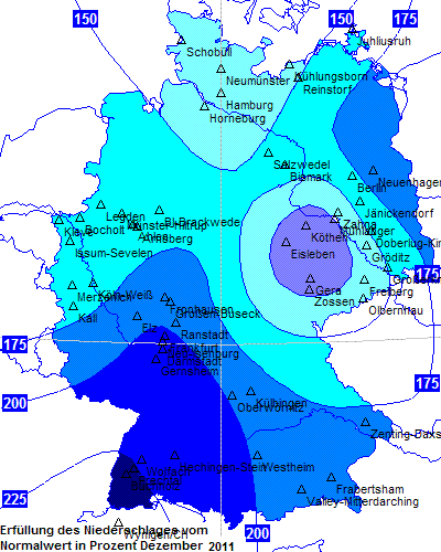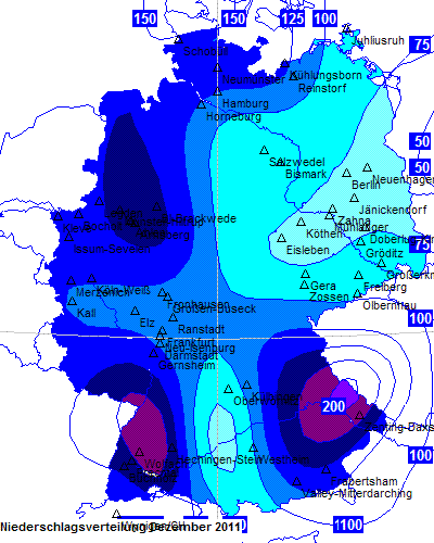 Verteilungskarten unserer Stationen für den Monat Dezember 2011