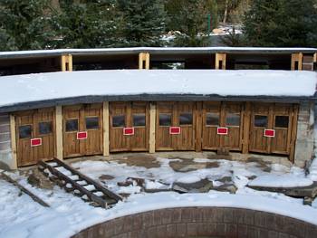 Hier ging es Anfang März 2013 weiter. Die ersten Tore sind nun fertiggestellt und eingebaut. Am 13. März konnte Vollzug gemeldet werden. Fensterkreuze werden noch eingesetzt, da dies realistischer ist. Ganz nach dem Original sind die Türen mit den Tafel Sh2 ausgestattet(Wärterhaltsignal). Im Herbst wurden dann wieder aus alten Rasenkanten die Lokgruben erstellt und die Zwischen-räume mit denselbigen ausgelegt, um einen festen Grund bekommen.