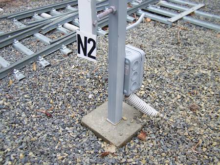 Es wurden neue Betonfüße mit Hülsen gegossen, die Masten bekamen Anschlussdosen.